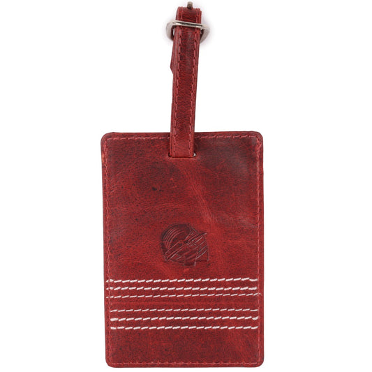 CRICKET-GIFTS - Buffalo Leather Luggage Tag | Red with White Cricket Ball Stitching | Durable & Stylish Travel Accessory | Personalizable ID Area | Love Cricket, OneSize