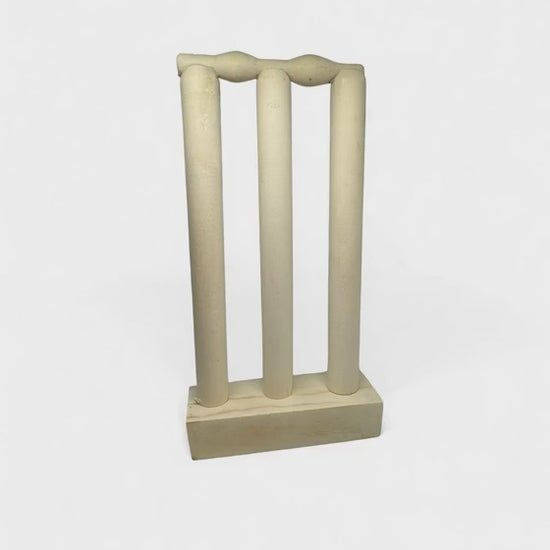 This set includes three stumps, two bails, and a sturdy base, all crafted from durable wood to ensure a timeless and classic appeal. The unvarnished finish adds a natural aesthetic, allowing for a raw, organic look or the option to personalize and paint it to match your style. Measuring 21cm in height, 10cm in width, and 4cm in depth, this display set is the perfect size for a desk, shelf, or mantelpiece, making it a standout feature in any cricket fan's collection.