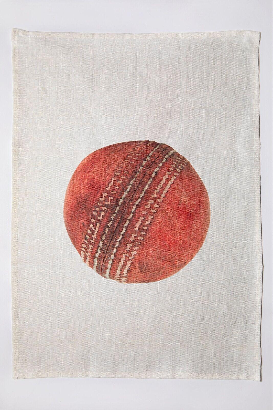 The artwork on this 100% Linen tea towel features a high resolution photograph of a vintage cricket ball which is severely worn from prolonged use. The tea towel is 100% premium linen, should be cold washed, line dried and ironed on the reverse side. Sized 50 x 70 cm.