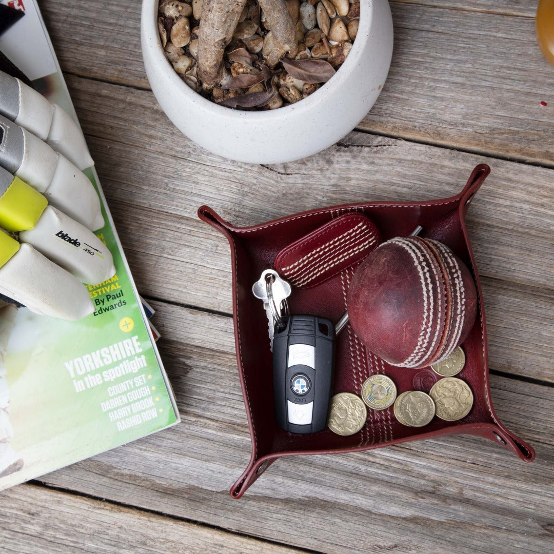 A great addition to THE GAME range. The Gully is ideal for the desk or side table, ready to catch those loose items that need a home: keys, watches, coins, pens and glasses. Made with our premium, vegetable tanned Italian leather and stitched to remind you of the game you love. Height: 4cm / Length: 16cm / Width: 16cm Comes with luxury soft cotton pouch